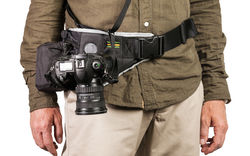 ベルトにカメラ脱着用ハブシステムと、レンズや携帯など小物が収納可能なポケットを内蔵し、ストラップにスライディング機能を装備した、安全性と実用性を両立したカメラベルトです。