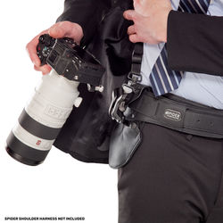 洗練されたデザインだけでなく機能性も抜群。Spider Holsterサスペンションシステムが長時間の撮影による身体への負担を軽減しながら、必要な瞬間に素早く、安全にカメラへアクセスできます。撮影効率を大きく高めるプロ仕様の設計です。